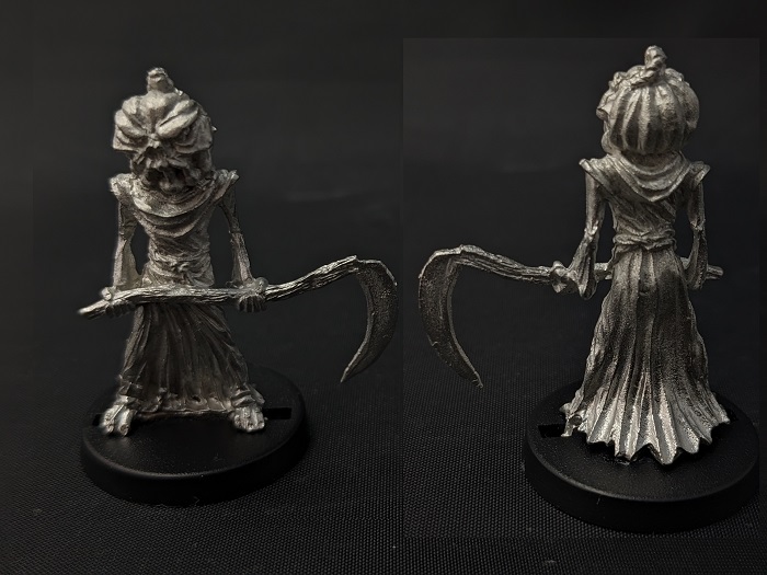 One lead-free pewter Jack-o-Lantern Reaper. (Pictured from multiple angles.) Measures 37 tall. Sculpted by: Nicolas Genovese