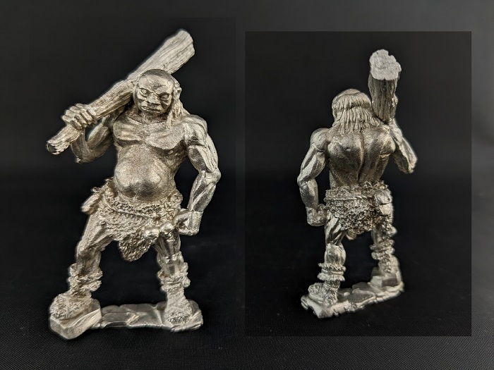 One lead-free pewter Mountain Giant Miniature, requires assembly. (Pictured from multiple angles.) Measures 62mm tall to top of head. Sculpted by Nicolas Genovese