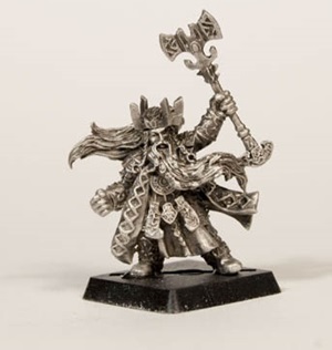 One lead free pewter Stong Stonebeard Dwarf King. This was originally produced as a Magnificent Egos figure. Measures 29mm tall to tips of crown. Sculpted by Sandra Garrity